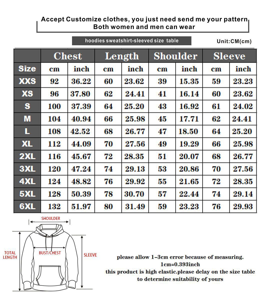 Sizes: XS, S, M, L, XL, XXL, 3XL, 4XL, 5XL, 6XL