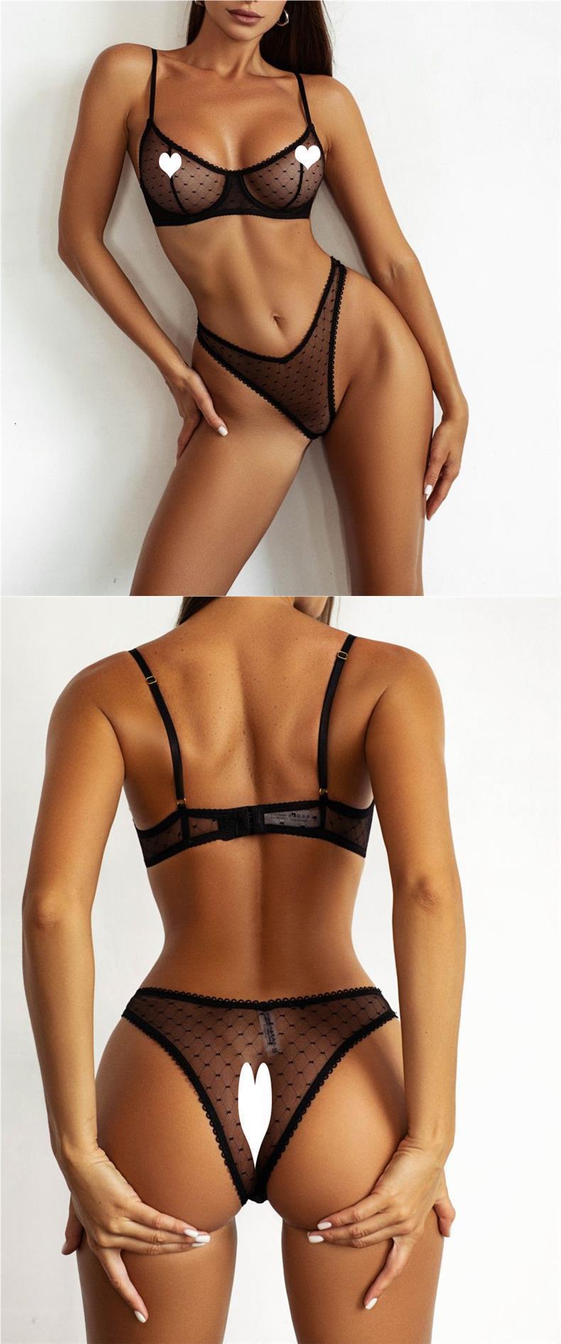 Net sexy French bra set sexy underwear see-through temptation ultra-thin spongeless comfortable breathable underwear