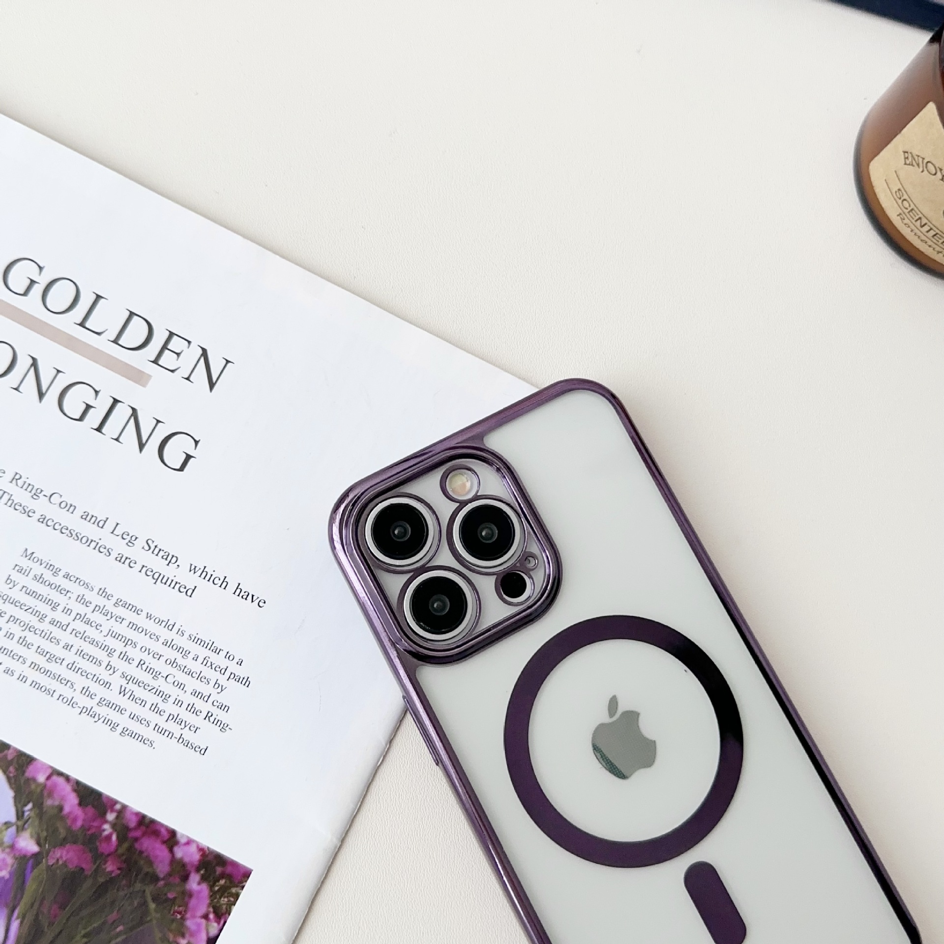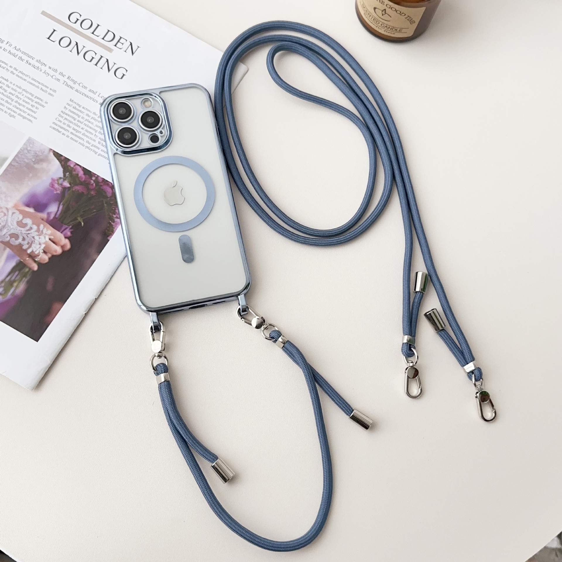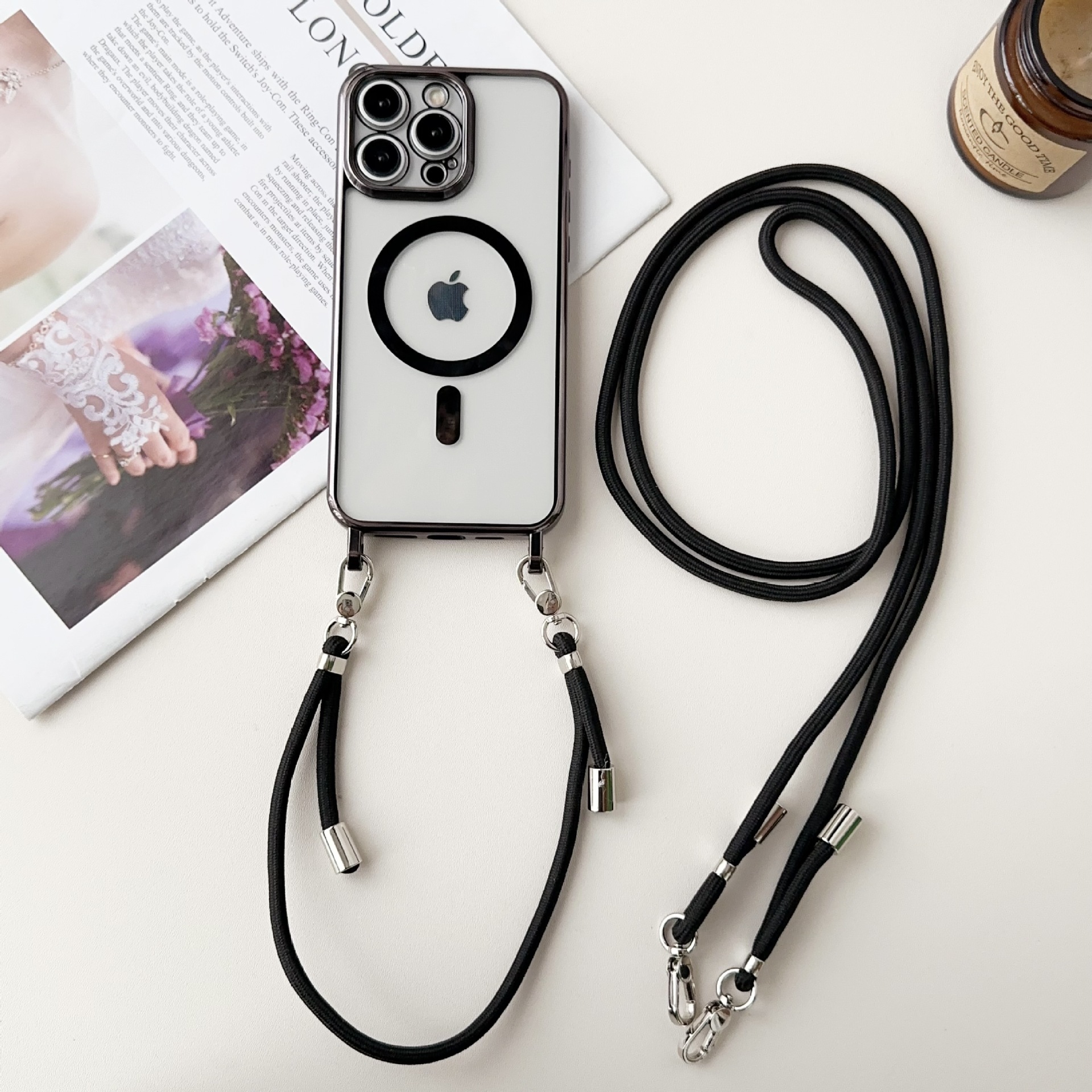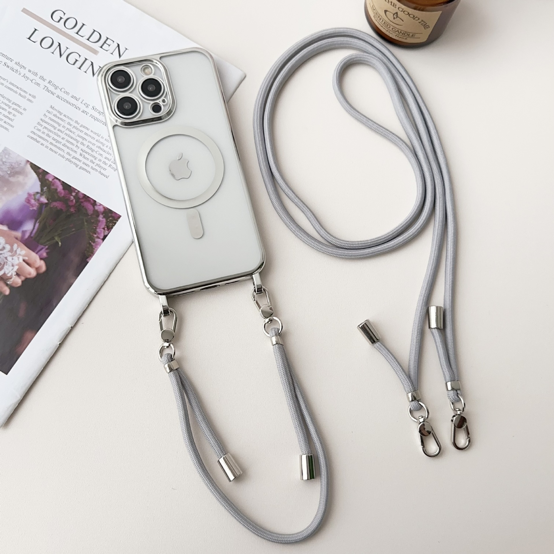 New electroplated magnetic suction integrated long and short hanging rope suitable for iPhone 15 phone case, Apple 14 promax protective case
