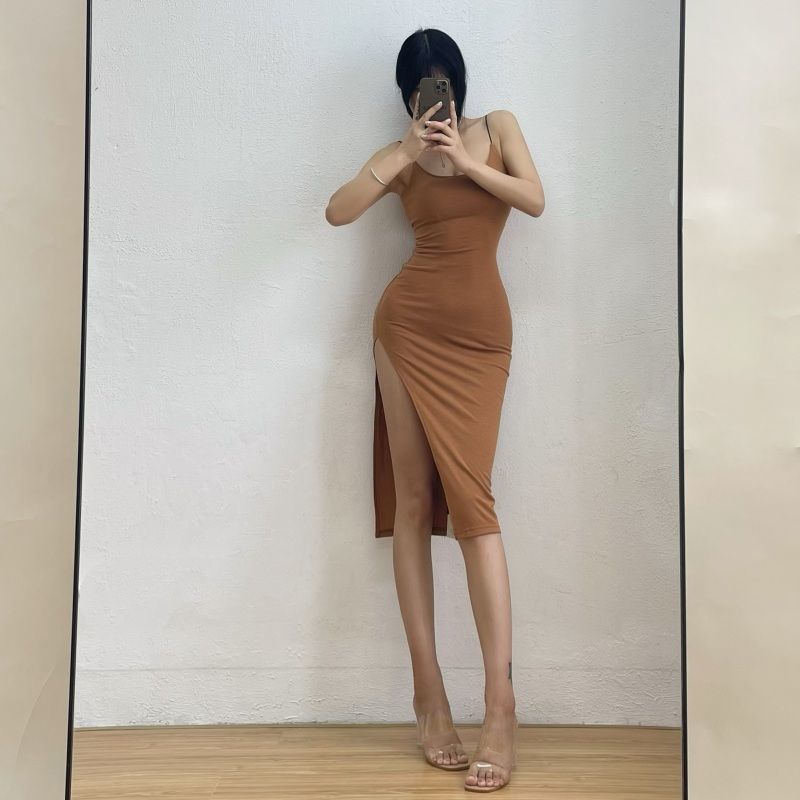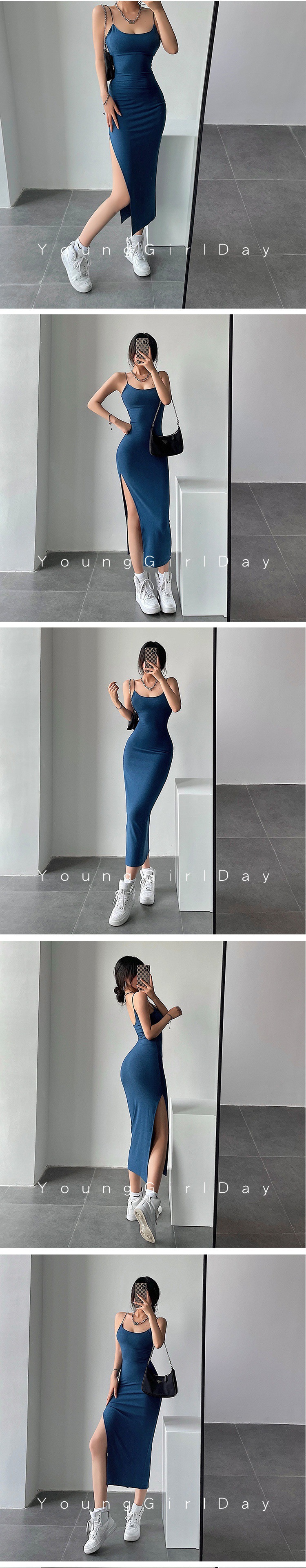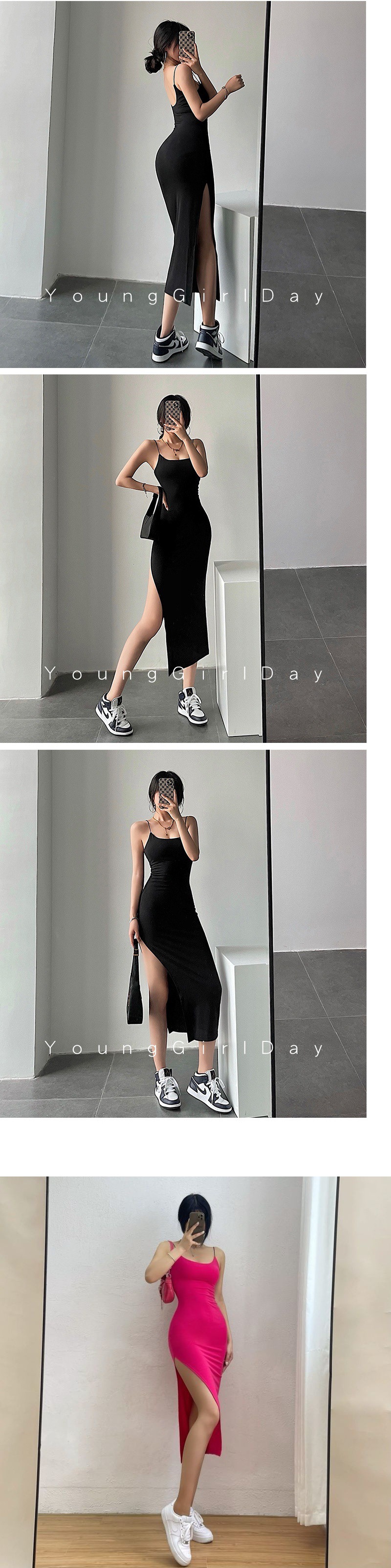 New Sexy Sleeveless Slim Long Dress Women Party Club High Split Spaghetti Strap Dresses Woman Bodycon Dress Female