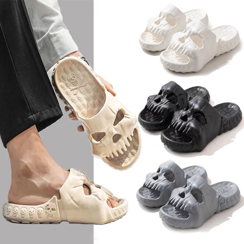 Personalized Skull Design Halloween Slippers Bathroom Indoor Outdoor Funny Slides Beach Shoes
