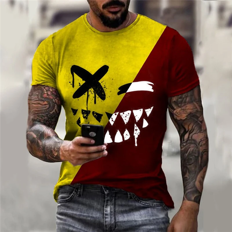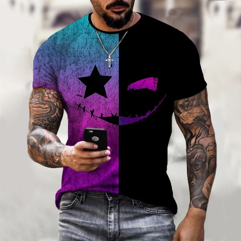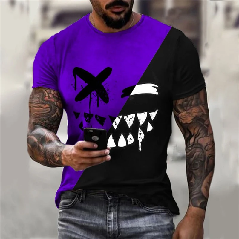Summer 3D Devil Smiles Printing T-Shirt For Men Short Sleeve Clothing Casual Colorful Streetwear Fashion Outdoor Tees&Tops