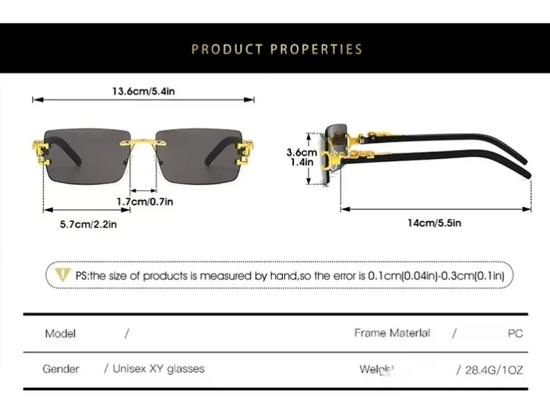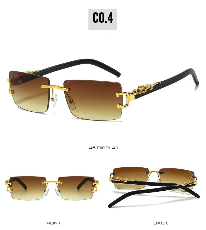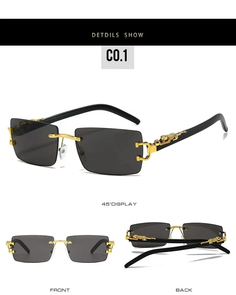 Trend Rechthoek Randloze Zonnebril Vrouwen Mannen Merk Design Luxe Unieke Metalen Been Gradiënt Grijze Lens Zonnebril Uv