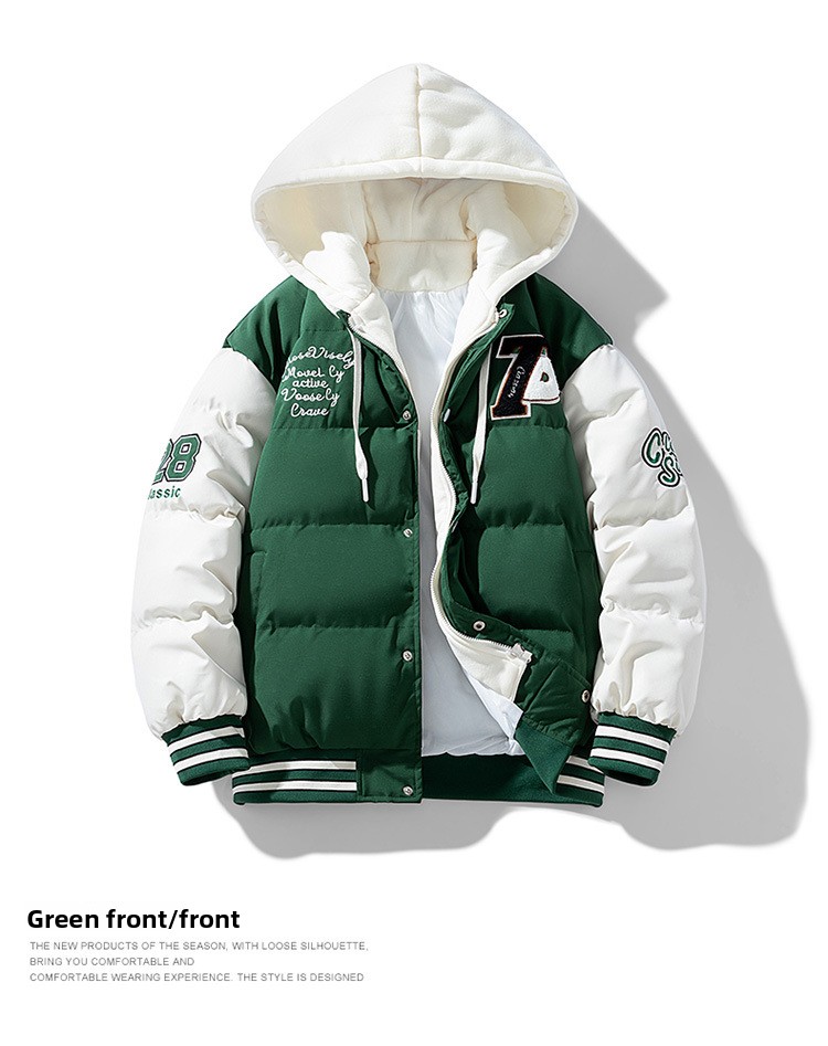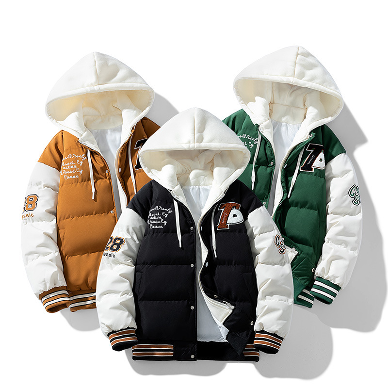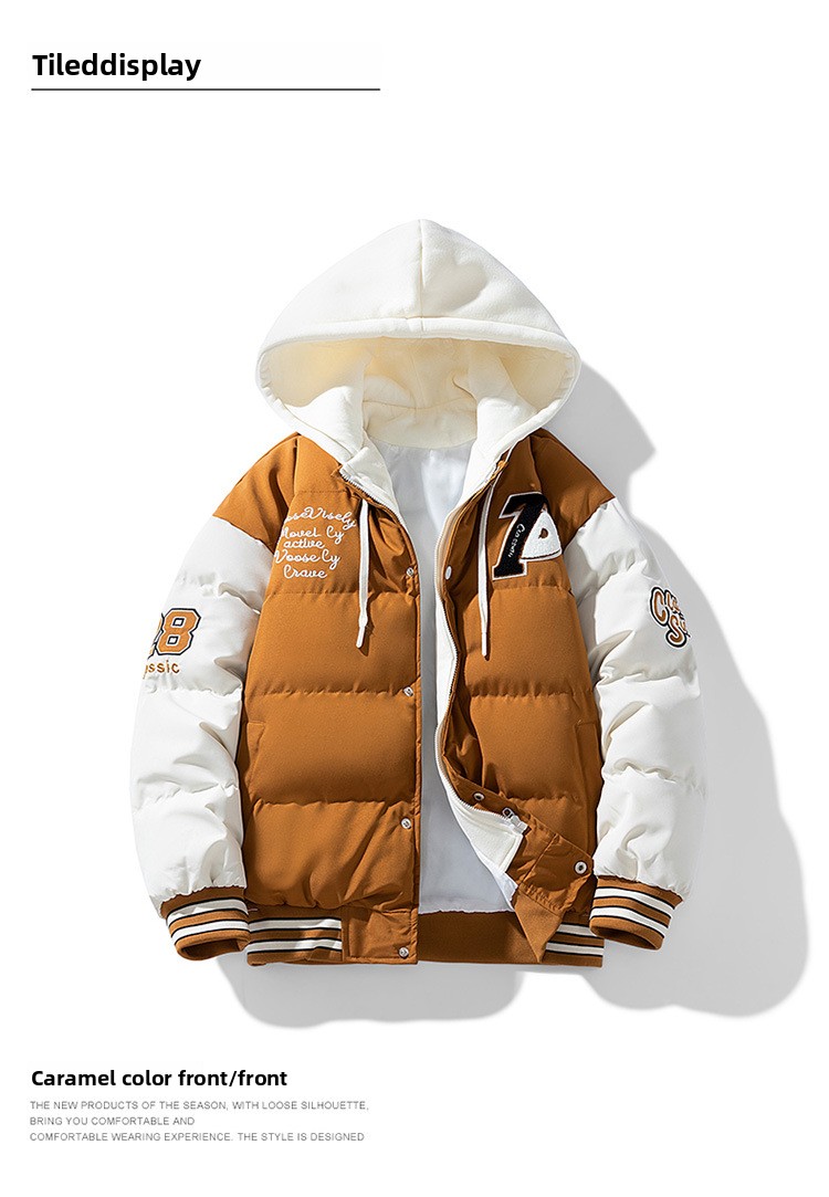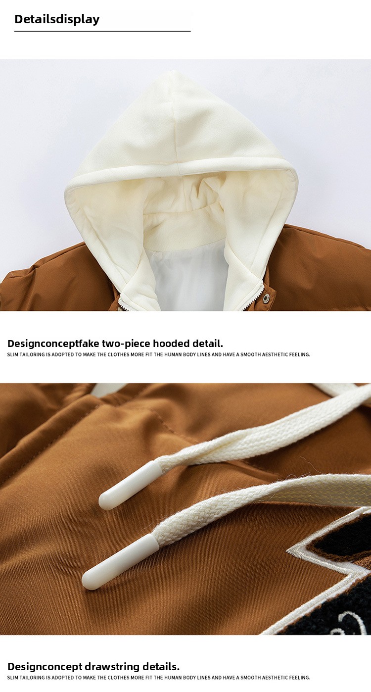 Style: Hooded fake two-piece design adds a trendy and casual look.