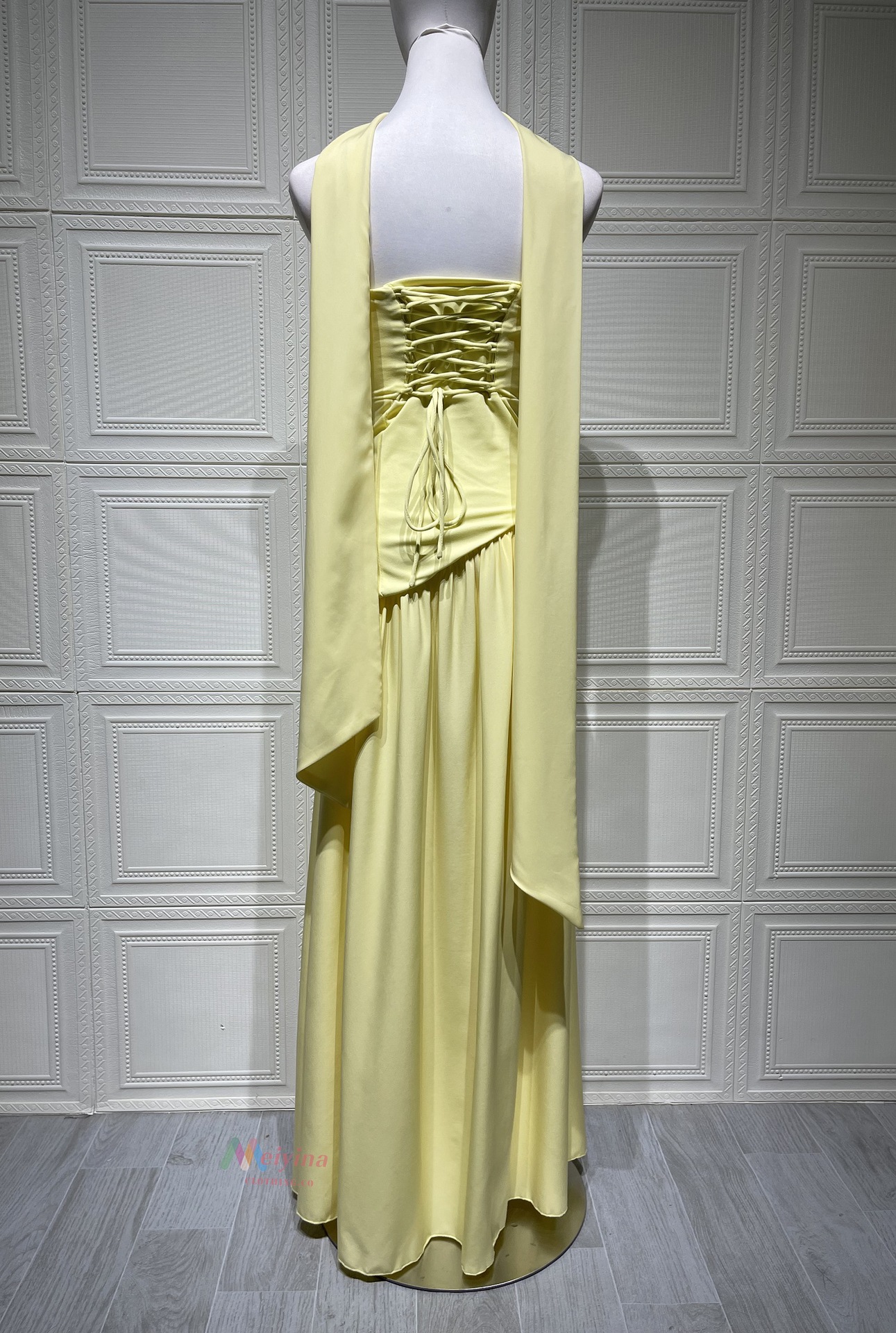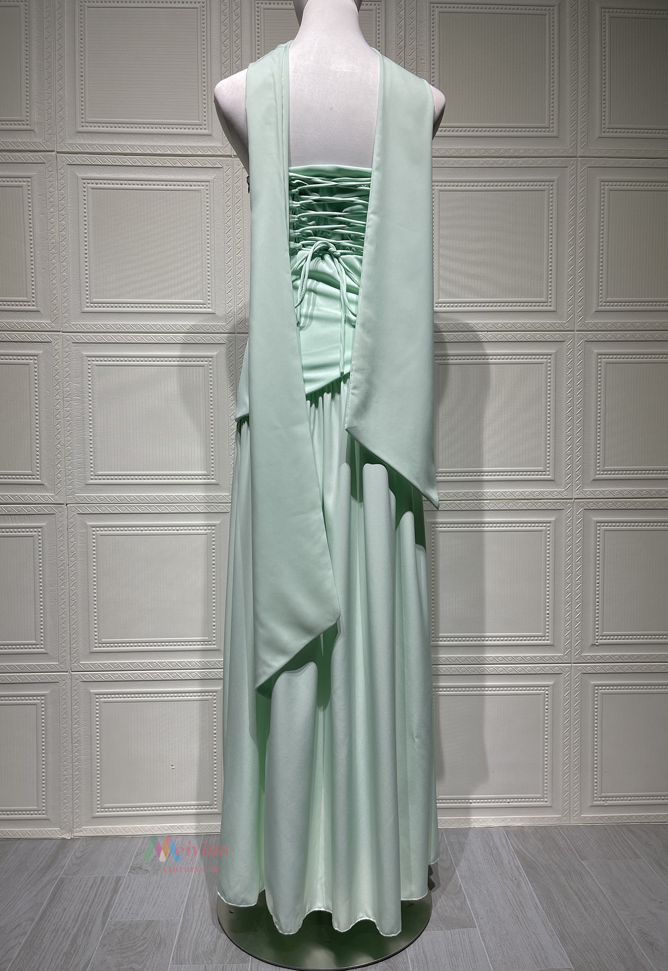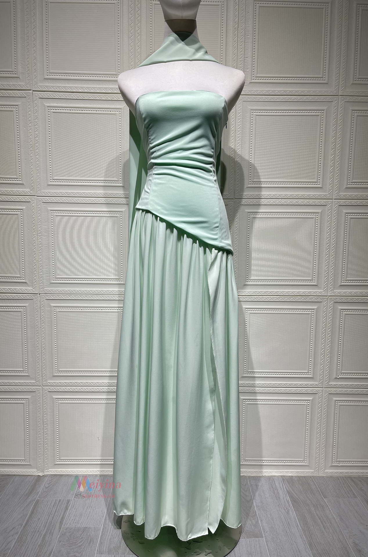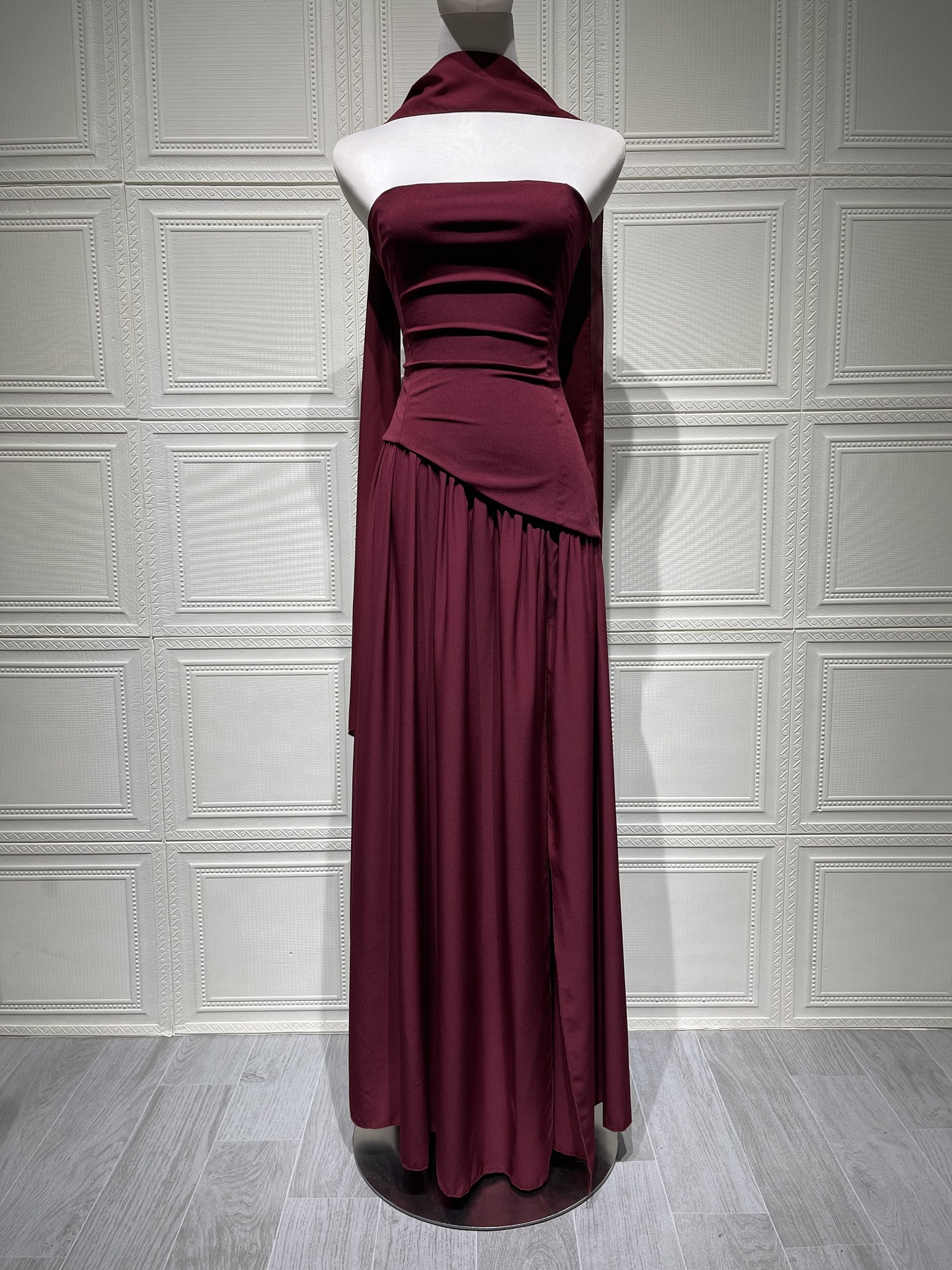 High Slit Detail: Elegant long dress with a dramatic high leg split for added allure.