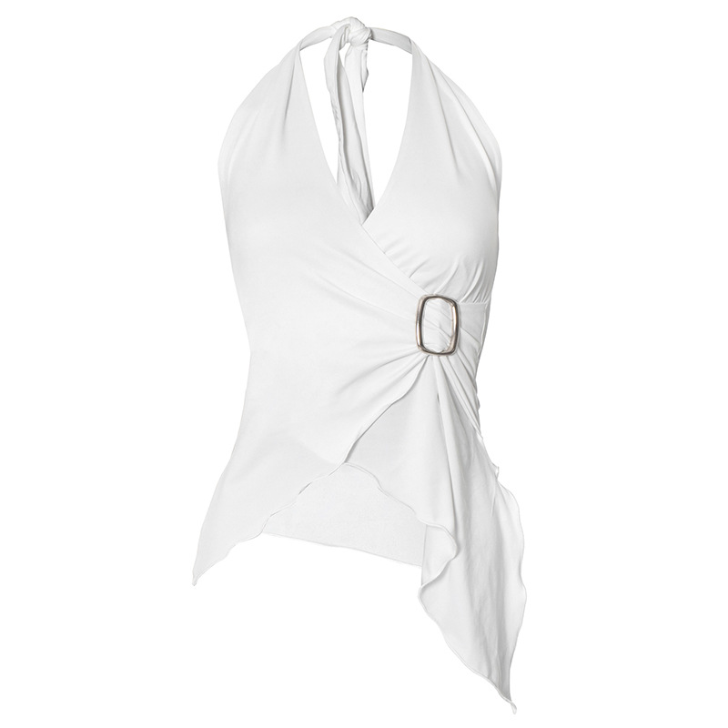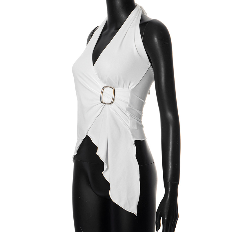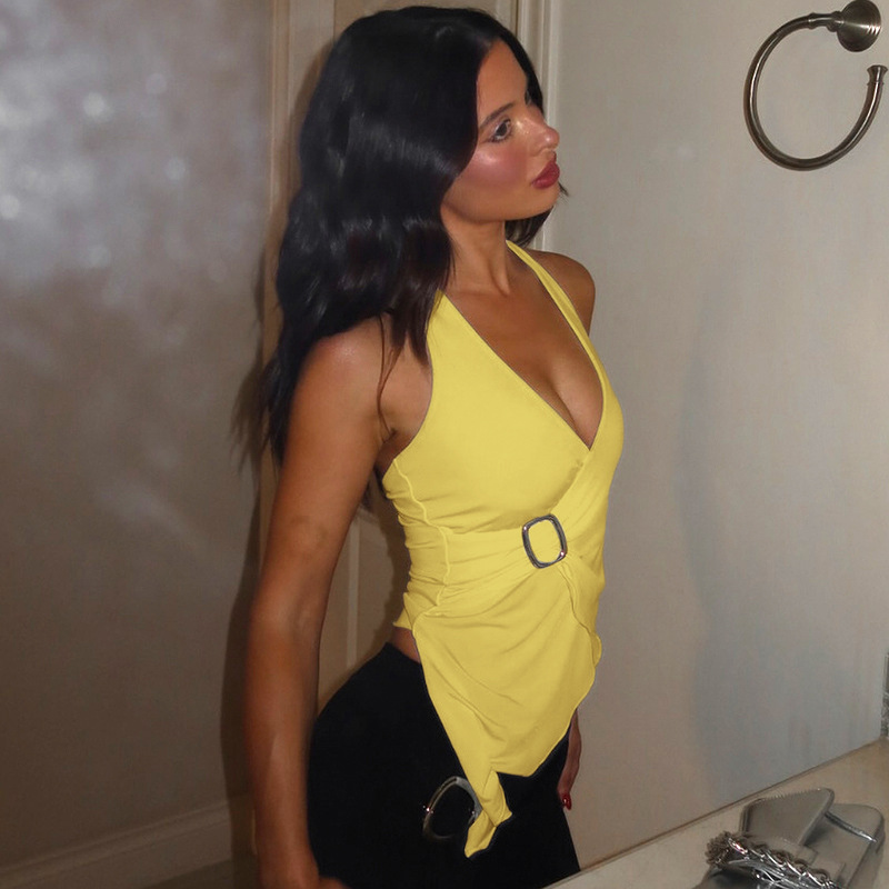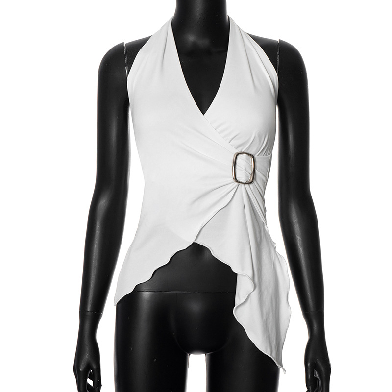 Women's Solid Color Sleeveless V-neck Sexy Halter Crossover Tops